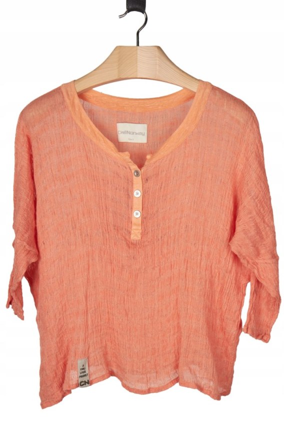 CHILLNORWAY - włoska bluzka lniana marszczona faktura lnu - L