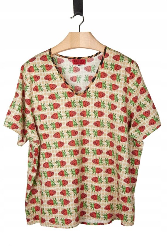 DORIS MEGGER niespotykana bluzka motyw truskawki mięciutka bawełna 52
