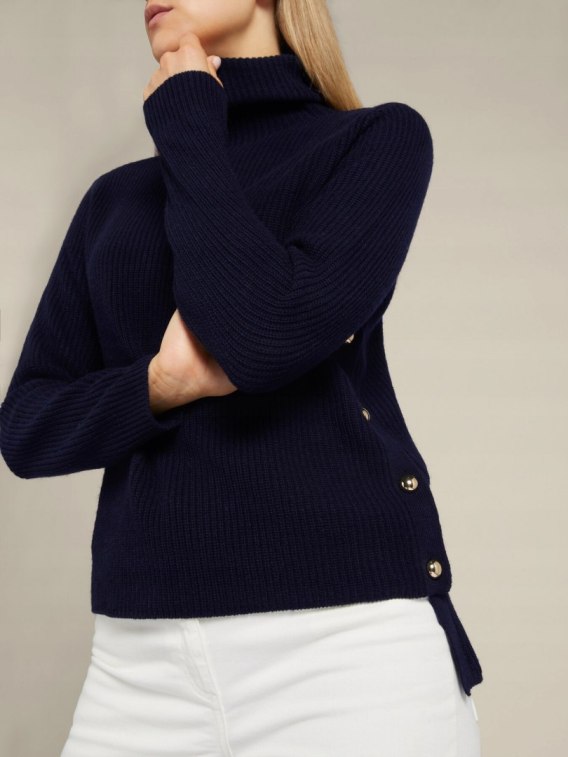 ELENA MIRO wyjątkowy sweter ciemny granat boczne guziki L