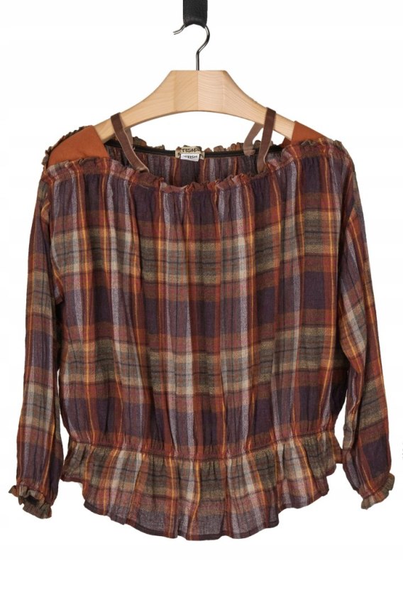 FETISH kolorowa bluzka koszulowa delikatna wełna w kratkę L