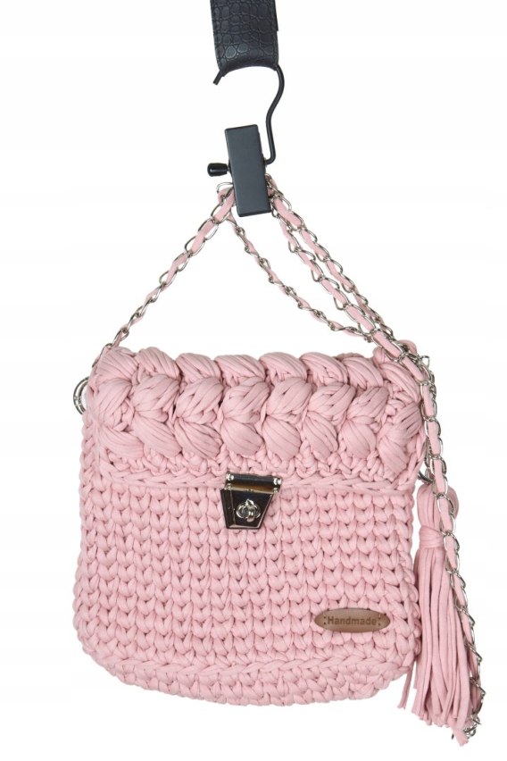 Fantastyczna torebka HANDMADE BOHO szydełkowa ze sznurka delikatny róż