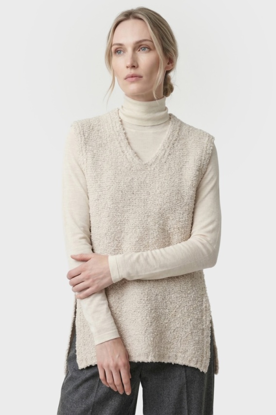 JIGSAW nietuzinkowy mięciutki sweter kamizelka boucle wełna śmietankowa L