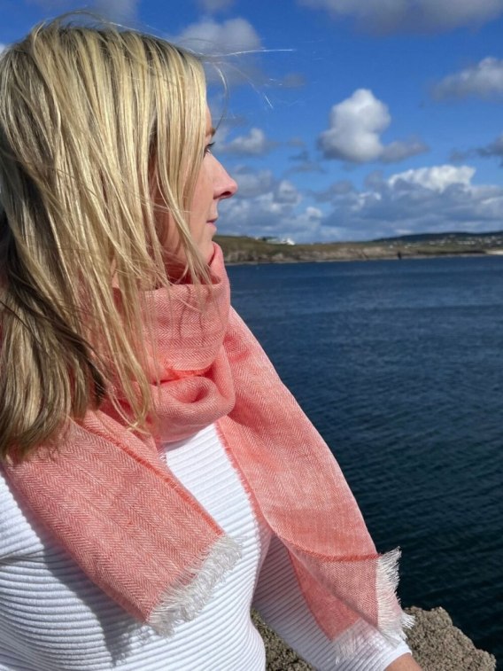 MCNUTT - mięciutki szal lniany piękny koralowy kolor