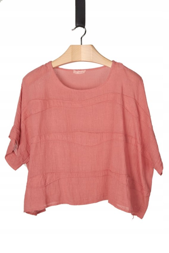 Mięciutka włoska bluzka len bawełna piękny łososiowy kolor luźny krój XL