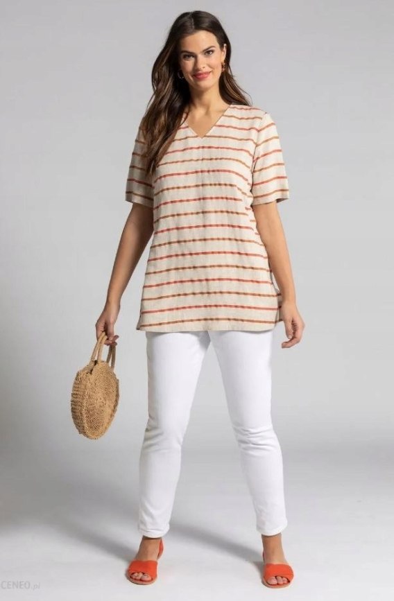 ULLA POPKEN - bluzka koszulowa tunika pastelowe kolory wiskoza len - 46/48