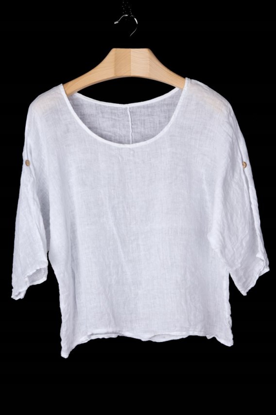 Włoska bluzka mięciutki len śnieżna biel luźny krój XL